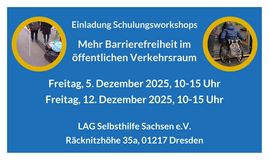 Im Dezember 2025 bietet die LAG SH Sachsen mehrere Schulungsworkshops "Barrierefreie Gestaltung des öffentlichen Verkehrsraumes" an.
